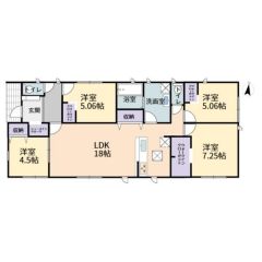 シューズインクローク、広々洗面室のある4LDK平屋建て