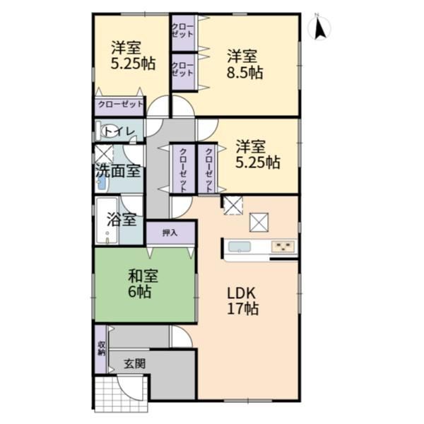 | 間取り詳細 | LDK17畳(1F)、和6畳(1F)、洋8畳(1F)、洋5.25畳(1F)、洋5.25畳(1F) | 都市計画 | 非線引区域 |