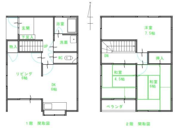 間取り詳細 | DK6畳(1F)、L6畳(1F)、和6畳(2F)、和4.5畳(2F)、洋7.5畳(2F) | 都市計画 | 市街化区域 |
