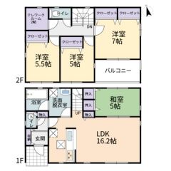 | 間取り詳細 | LDK16.2畳(1F)、和5畳(1F)、洋7畳(2F)、洋5.5畳(2F)、洋5畳(2F) | 都市計画 | 非線引区域 |