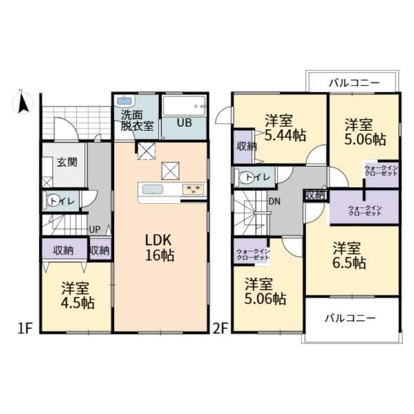 | 間取り詳細 | LDK16畳(1F)、洋4.5畳(1F)、洋6.5畳(2F)、洋5.44畳(2F)、洋5.06畳(2F)、洋5.06畳(2F) | 都市計画 | 市街化区域 |