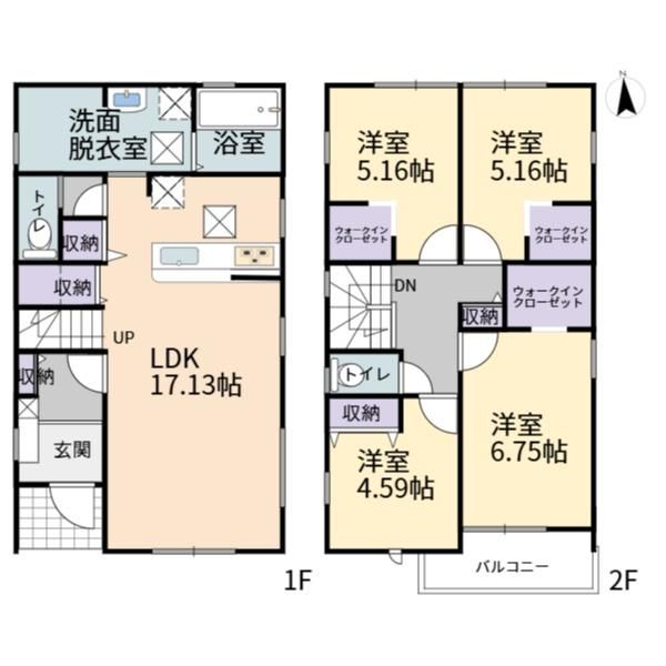 | 間取り詳細 | LDK17.13畳(1F)、洋6.75畳(2F)、洋5.16畳(2F)、洋5.16畳(2F)、洋4.59畳(2F) | 都市計画 | 市街化区域 |