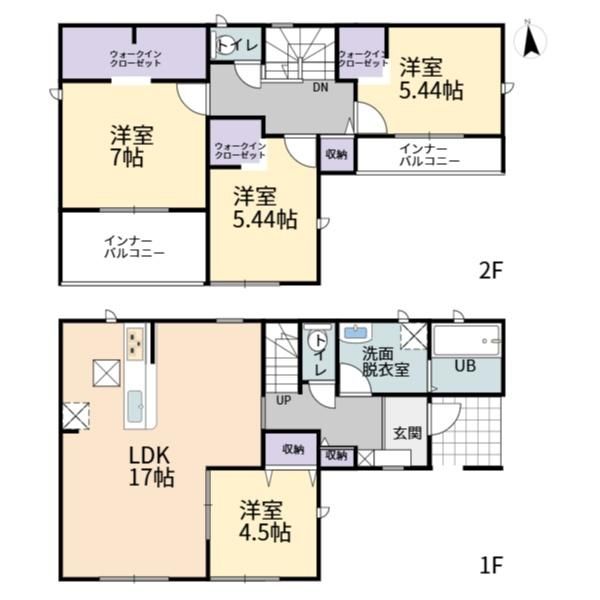 | 間取り詳細 | LDK17畳(1F)、洋4.5畳(1F)、洋7畳(2F)、洋5.44畳(2F)、洋5.44畳(2F) | 都市計画 | 市街化区域 |