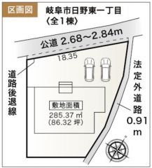| 土地面積基準 | 公簿 | 接道 | 公道 北 幅員2.68m (接面18.35m) |