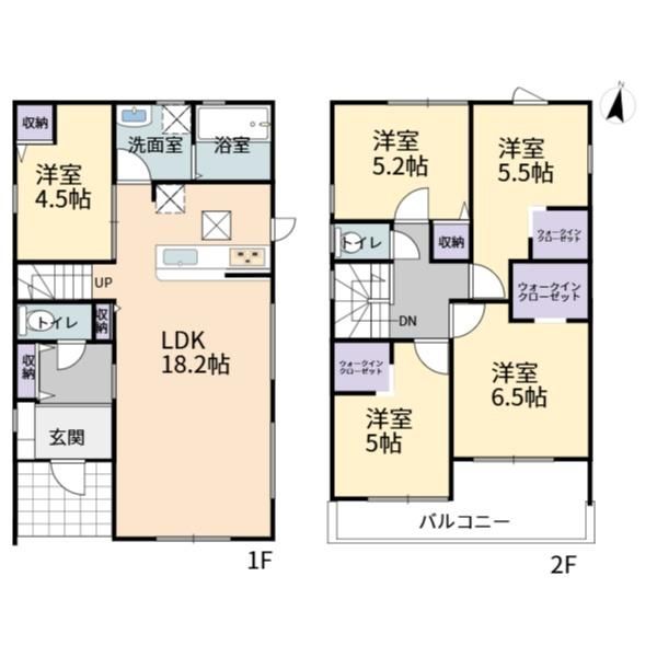 | 間取り詳細 | LDK18.2畳(1F)、洋4.5畳(1F)、洋6.5畳(2F)、洋5.5畳(2F)、洋5.2畳(2F)、洋5畳(2F) | 都市計画 | 市街化区域 |