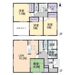 | 間取り詳細 | LDK16.2畳(1F)、和4.5畳(1F)、洋7.5畳(2F)、洋6畳(2F)、洋5畳(2F) | 都市計画 | 市街化区域 |