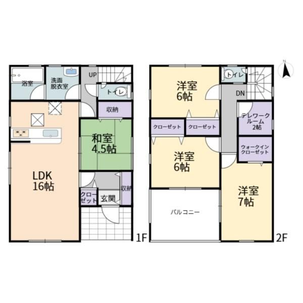 | 間取り詳細 | LDK16畳(1F)、和4.5畳(1F)、洋7畳(2F)、洋6畳(2F)、洋6畳(2F)、S2畳(2F) | 都市計画 | 市街化区域 |