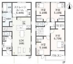 | 間取り詳細 | LDK16畳(1F)、S5.44畳(1F)、洋6.75畳(2F)、洋5.16畳(2F)、洋5.16畳(2F)、洋5.16畳(2F) | 都市計画 | 市街化区域 |