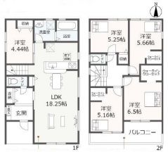 | 間取り詳細 | LDK18.25畳(1F)、洋4.44畳(1F)、洋6.5畳(2F)、洋5.66畳(2F)、洋5.25畳(2F)、洋5.16畳(2F) | 都市計画 | 市街化区域 |
