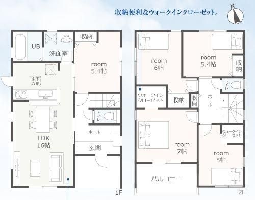 | 間取り詳細 | LDK16畳(1F)、洋5.4畳(1F)、洋7畳(2F)、洋6畳(2F)、洋5.4畳(2F)、洋5畳(2F) | 都市計画 | 市街化区域 |