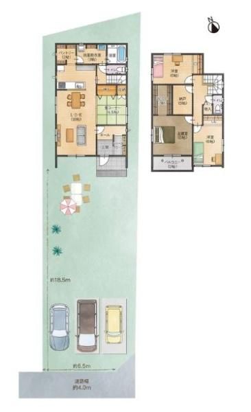 LDK18畳(1F)、和4.5畳(1F)、洋8畳(2F)、洋6畳(2F)、洋6畳(2F)、S3畳(2F) |
