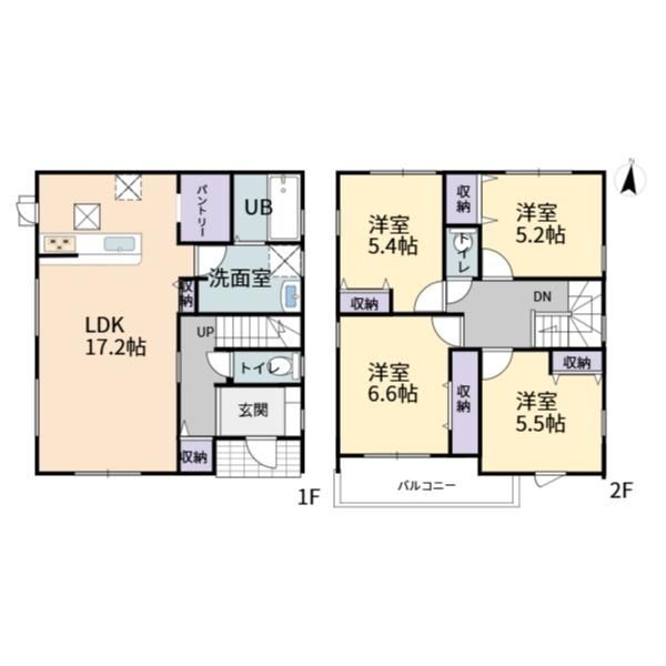 | 間取り詳細 | LDK17.2畳(1F)、洋6.6畳(2F)、洋5.5畳(2F)、洋5.4畳(2F)、洋5.2畳(2F) | 都市計画 | 非線引区域 |