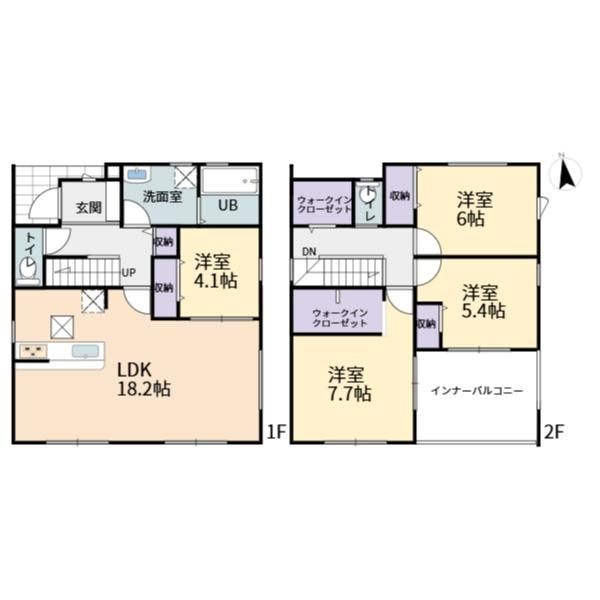 | 間取り詳細 | LDK18.2畳(1F)、洋4.1畳(1F)、洋7.7畳(2F)、洋6畳(2F)、洋5.4畳(2F) | 都市計画 | 非線引区域 |