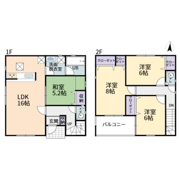 | 間取り詳細 | LDK16畳(1F)、和5.2畳(1F)、洋8畳(2F)、洋6畳(2F)、洋6畳(2F) | 都市計画 | 市街化区域 |