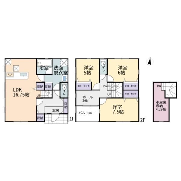 | 間取り詳細 | LDK16.75畳(1F)、和7.5畳(2F)、洋6畳(2F)、洋5畳(2F) | 都市計画 | 市街化区域 |
